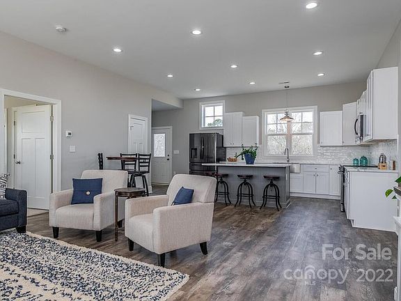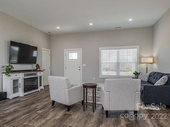Stunning, custom-built, three-bedroom home with an open floorplan flooded with natural light. The interior is sure to impress with high ceilings, LVP flooring, stone counters throughout, and a neutral palette. Extra seating at the kitchen island adds to the ease of entertaining. Cooks will love the high-end appliances, classic cabinetry, tile backsplash and stainless-steel farmhouse sink. The primary suite has a spacious walk-in closet and ensuite bathroom with dual vanity and frameless glass at the tiled shower. The curb appeal of this modern, barn-style home is remarkable. It is perfectly situated to enjoy long range views. The 10.14-acre parcel offers cleared, fenced pastures and a large, wooded section. Bring your horses! The barn measures 36x24 and is equipped with power and water. The carport provides covered parking for three vehicles at the side entry. Kayak/canoe at the Oakboro portion of the Rocky River Blueway which is just 2 minutes away.