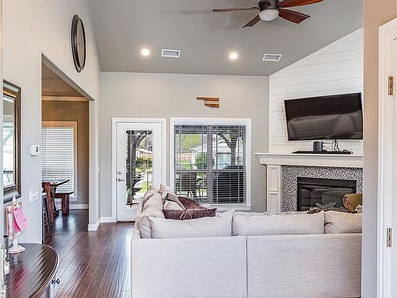 Super clean 4 bedroom 2 bath with high vaulted ceilings and beautiful hardwood floors. This house rivals new constructions with modern finishes like the white tile in bathrooms, granite, new carpet , deep farmhouse style sink and much more. This layout is split with 3 rooms down one hallway and the private master on other end of house. Don't forget to look at the beautiful entertainment setup out back!