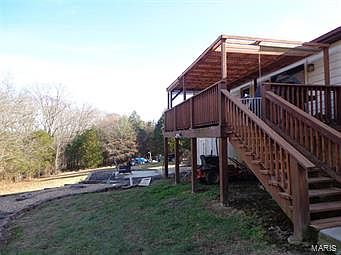 A great home on 3.1 acres in the Hillsboro School district. so many amenities. the lower level has been finished with a family room, kitchenette a bedroom and a half bath. The main level sports 2 bedrooms, the master has a private bath with walk in shower, The separate formal dining room was previously a third main floor bedroom and could easily be converted if needed. The kitchen has beautiful oak cabinetry, a built in wine rack above the refrigerator with all white appliances that stay with the home. The patio doors in kitchen walk out onto a big beautiful covered deck, you can sit and watch the abundance of wildlife that venture up out of the woods. An open stairwell decorated in wood leads to the finished lower level. The living room sports a bay window and vaulted ceiling. New air conditioning and heat pump installed in 2017. This is the perfect home to start a family!!!