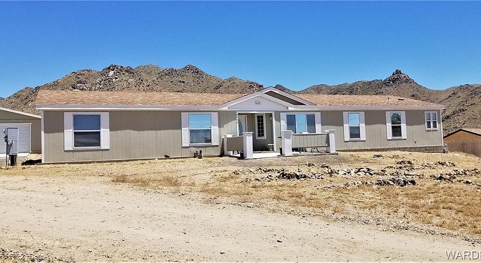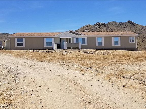 Lovely spacious home located in So Hi Estates, (just east of Hwy 93, Golden Valley) in the foothills of Cerbat Mountains with beautiful views of the hills and across Golden Valley. Very versatile open plan concept, with living, family, kitchen & dining area (or maybe a games room or formal dining?) to arrange to best suit your need. Enter into living (or formal dining) room which has opening to kitchen, and open plan the large casual dining area that adjoins kitchen. From casual dining, steps lead down to lovely, spacious family room. Large kitchen features a huge walk in pantry and attractive island that includes breakfast bar at a lower level. Split bed style with large master bed, walk in closet. Master bath has 2 vanities, garden tub and separate large shower, separate toilet & linen closet. On the other end of the home are 3 good sized bedrooms with nice sized closets. Guest bathroom and a separate linen closet in hallway. Detached 24 x 24 garage, room for work bench. Owned sun-tracking solar system keeps the electric bills low! A must see home to appreciate the versatility! Lovely views all around to watch sun-rise, sun set and the stars twinkling at night. Home was recently painted and re-leveled. Horses and livestock permitted. Plenty of parking space.