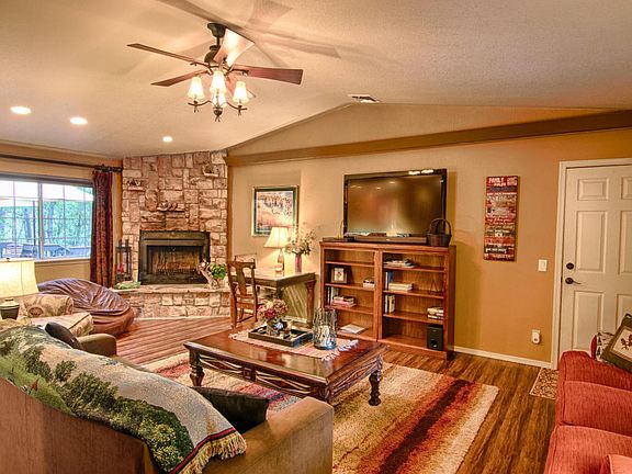 Incredible cabin on Huge .70 acre, This 4 bedroom 3 bath home features 2 masters, Two family rooms, remodeled with beautiful engineered wood floors,Hickory cabinets and corian counters, new refrigerator, new range, new washer/dryer, stone wood burning fireplace, set heat and alarm away from home remotely. large landscaped lot with trex decks and hot tub on the back deck. extra storage shed in back, fenced yard, part of property backs to reservation land, - Must see. seller is licensed to sell real estate in the state of Arizona