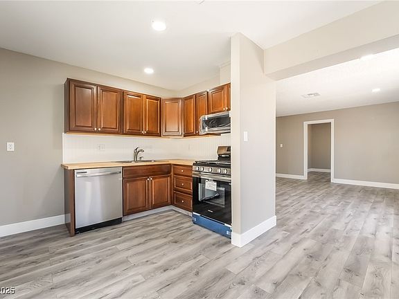 Move in Ready! Completely REMODELED! Welcome to this charming 3-bedroom, 2-bathroom townhouse with a 1-car garage. No HOA! Updated kitchen cabinets w/butcher block countertops & Brand New Stainless steel appliances. New luxury wood-like vinyl flooring throughout w/new 6" baseboards. All new interior paint! New interior doors w/black matte hardware. Both bathrooms have been updated w/new vanities, LVP flooring, shiplap accent wall, light fixtures & toilets. New recessed lighting throughout w/new outlets & switches. New Patio door sliders w/all new trim. Large private yard w/Covered Patio. Move in ready! Carport is enclosed for a storage area/can be converted back. New water heater. Located minutes from the Palms Casino, the Las Vegas Strip, shopping, dining, & major freeways, this home offers both convenience & accessibility. Whether you're a first-time buyer, downsizing, or looking for a great investment property, this is an opportunity you don’t want to miss! Schedule a showing today!