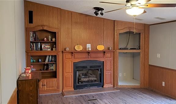 Living room, Great room including fireplace with gas logs, dining area and Kitchen. Kitchen has abundance of cabinets , work island and desk area. Range, microwave, dishwasher and refrigerator, and counter tops were replaced 2020. Large Owner's bedroom with walk in closet. Owner's bathroom has been updated with raised double vanity, new garden tub, shower enclosure and doors. Split floor plan with 2 bedrooms. Hall bath has a dual entrance from the hallway and laundry for easy access to bathroom. The hall bathroom has a raised vanity, new shower enclosure and doors. The home has been freshly painted, plank vinyl flooring throughout in 2020. Exterior there are newer storm windows, roof, heat and air, sliding glass door , and back deck all updated in 2020. Level back yard perfect for entertaining. Fenced yard. Front country porch with swing for lazy days outside. Home situated on 1.30 acres.