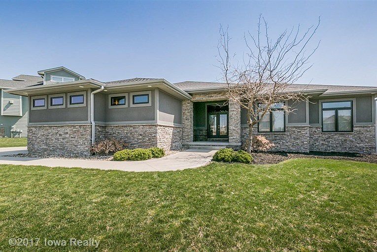 Better than new. Modern Custom 4 BR Ranch in desirable Clive neighborhood, near trails & park, Waukee Schools. Over 3,400 sf of luxury finishes, exceptional craftsmanship, & an abundance of upgrades. Btfl Dbl Door Entry welcomes you in with 10ft ceilings that flow through the Grt Rm w/Custom Linear Gas Fplc. Enjoy a snack at the kitchen raised bar, or sit down for a meal in the dining area. Kitchen has high end maple cabinetry w/soft close drwrs, tile backsplash, quartz tops, upscale lighting, & Bosch dishwasher. 1st flr Laundry near well organized & oversized 3 Car Garage w/In Floor Drain Sys & deep stalls incl 28ft deep 3rd Stall. Mstr Suite W/Walk-in Closet & Private Bath w/Spa Tub, Tile Shwr, & Dbl Sinks. Spacious 2nd BR. 9ft. Ceilings in LL that holds 2 BR's, Full Bath, & Fmly RM w/Wet Bar incl Uline Fridg. Relax on the Cvr'd Stamped Concrete Patio w/Add'l Uncvr'd Patio. Est Landscaping, Fenced Backyard, Irrig Sys, zoned HVAC, Central Vac, & m