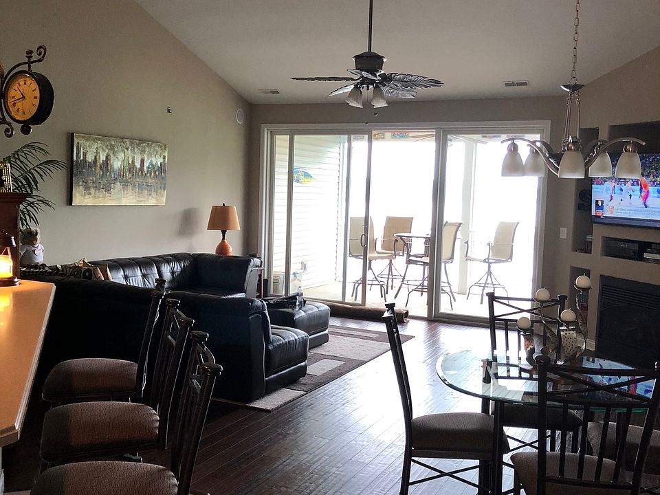 We have loved living in our 3BR 3BA condo as original owners since 2006 but with both of our sons graduated and moving out of state we have decided to put our favorite summer getaway on the market. We are excited to give someone else the opportunity to have great memories here! *About the condo: This condo is being offered fully furnished, including a 14x40 boat slip + covered slip for 2 PWCs. This top floor corner unit is private and quiet, with easy access via elevator and keyless front door entry. Walk in and instantly notice unobstructed lake views through the wall of floor to ceiling sliding doors. Our unit features vaulted ceilings giving the unit a very open and inviting feel. Less than 2 year old laminate hardwood installed throughout the living room. First bedroom has private on suite bathroom and walk in closet. Second bedroom has ample closet space with a jack and jill bathroom connecting to the entry hall. Master bedroom very large with beautiful lake views, a large on suite bathroom and walk in closet. Kitchen is updated with a ton of cabinet and pantry space, including stainless steel appliances and corian countertops. Kitchen, hallway, and bathrooms all have 14x14 ceramic. Lastly, enjoy the large screened in patio with storage, grill, tv, and speakers. This is a very clean updated condo, that has been cared after for many years. We're happy to answer any additional questions you may have! *About Cape Royale: Built in 2006 NO rentals Gated entry Ample parking (garage available at extra cost) Convenient location (17MM by water, and minutes to Osage Beach Parkway and Highway 54) - get to grocery stores, target, wal mart, restaurants in less than 5 mins. Pool / grilling and seating area Breakwater Easy condo to pool and dock access Large docks Quiet and clean Well maintained and landscaped