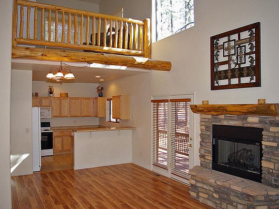 Beautiful 3 Br/2.5 BA townhome for sale in Pinetop Country Club. The beautiful laminated wood floors; Log-beamed vaulted ceiling; Peeled-log stairway and loft railings; and stone fireplace with a peeled-log mantle help to give this home a rustic, mountain cabin feel. This home has seldom been used and it's move-in ready. Perfect for enjoying the cool summers in the pines and as a winter retreat. Only a few hundred feet from the US Forest Service, with miles of trails for hiking, mountain biking, and horseback riding. It's also near the Pinetop Lakes Country Club with golf, tennis, pickle-ball and dining. Enjoy the outdoors from the covered deck and a garage for storing your toys.