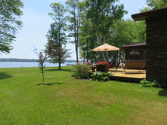 Approximately 1.3 acres with 85 ft of sandy Cedar Lake frontage! This 3 bedroom home has been lovingly cared for by one owner. Recent improvements include a new roof, Anderson insulated windows on the main floor, hot water heater, water softener, remodeled bathrooms, and new decking. There are beautiful water views from the master bedroom, living, dining, and family room. The dining-living room features a semi-cathedral T&G ceiling, two walls of windows, and Bruce hardwood floors. The family room, or Florida room, provides a full view of the lake and access to the large deck. Other home features include stainless-steel appliances, a stone fireplace, and a master bedroom with hardwood floors and walk-in closet. In the garage there is a second kitchen, for canning or entertaining, along with a 3/4 bath. There is a 16 x 22 shed before the tree line along with a lakeside shed for storing fishing poles and water gear. Plenty of room inside and out for entertaining, relaxing, or expanding. Pontoon and roll-in dock included. Additional 85 ft of frontage available.