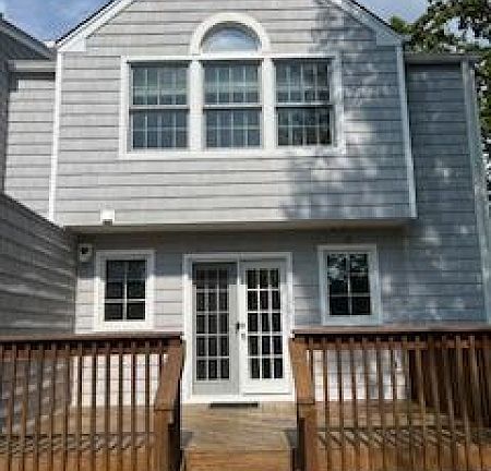 Left half of a charming Duplex with a separate private driveway and parking area. First floor has a large open Living Room with beautiful maple floors, an insert Fireplace and a Dining area. Spacious light Kitchen with newer SS appliances and a full size washer and dryer in a closet. Patio doors open onto the deck and patio and also a very nice yard. The lawn care is included in the lease. There is a 10x10 storage shed for use of tenants. Second floor there are 3 bedrooms, carpeted, with cathedral ceilings, generous windows for ample lighting and a full hall bathroom. The Master Bedroom has 2 walk-in closets and a full Bath. Excellent location near schools, restaurants, Kings, Bagel shop and pizza. Mendham High School has a unique International Baccalaureate program.