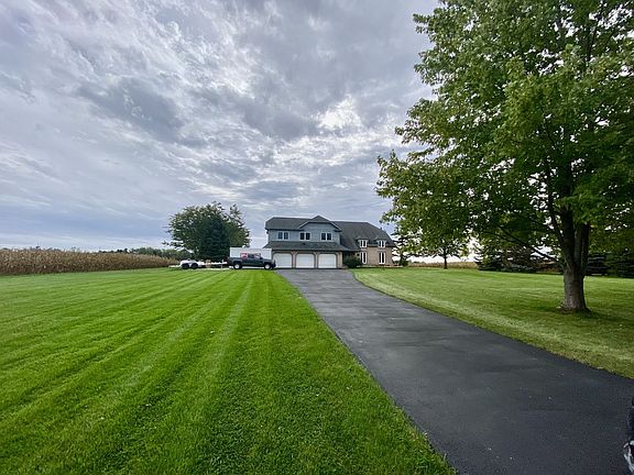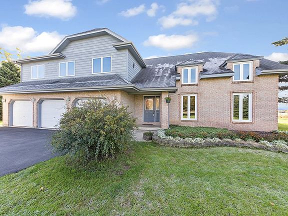 Have you been looking for an INCREDIBLE CUSTOM HOME AND LOADS of ACREAGE?! Then this is the one! Brick 4 bedroom/2.1 bathroom home with 3 car garage on 15.5 ACRES zoned Ag ~ Step in and be awed by the vaulted ceilings & various levels of open living space ~ Walk into the Living Room with 2-story ceiling & windows, skylight & hardwood floors open to the Dining Room up a few steps ~ Kitchen with double oven, fun tile floors, island, skylight & lots of cabinets ~ Breakfast Room with bay & door to deck ~ Walk down a few steps to the cozy & bright Family Room with stone gas start wood burning fireplace & hardwood floors plus sliders to backyard & concrete patio ~ Designated mudroom off garage with exterior access door, closet, sink & tons of space ~ Upstairs find 4 spacious bedrooms with ceiling fans including primary bedroom with tray ceiling, amazing views of the lot, his/hers walk-in closets & ensuite bath ~ Ensuite bath features 2-person jetted tub, separate shower & bidet too! ~ Hall bath with double sinks & ceramic tile floors ~ 2nd Floor laundry! ~ English basement with exterior access door & SO much room ~ Newer windows on the first floor ~ Newer furnaces ~ 30-year shingle roof 7 yrs new ~ Newer driveway with concrete bay ~ Amazing water due to the well being placed at the second aquifer underground & copper piping ~ Whole home freshly painted & Newer carpeting throughout 2nd floor ~ Home built to be efficient & last with all conduit, dual furnaces/A/Cs & extra insulation ~ 12.5 tillable acres on the property currently leased by local farmer ~ ENDLESS POSSIBILITIES WITH THIS LOT!! Located close to I47 making this private home close to necessities & highways too!