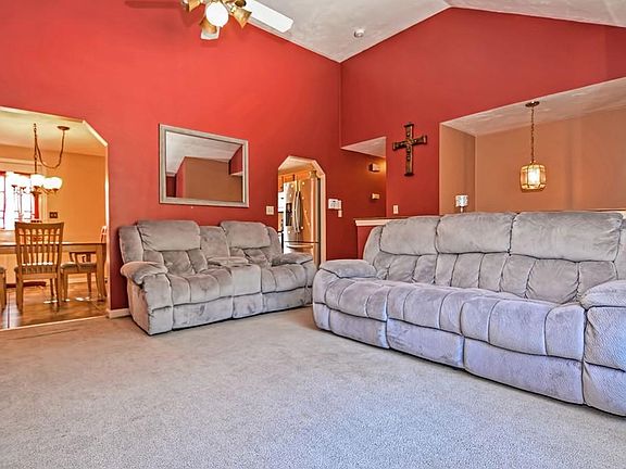 - Liv Dscrp: Flooring - Wall To Wall Carpet, Ceiling - Cathedral, Ceiling Fan(s)
