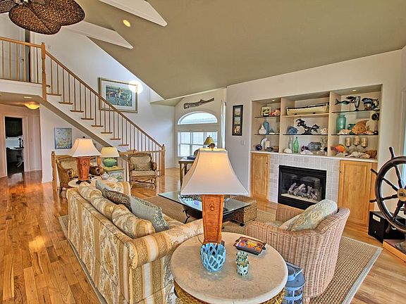World class Brandywine Developers built this beach block home with ocean views. This one owner, meticulous home was custom built, updated and beautifully decorated. The bright, tile entry foyer leads to a spacious family room with covered porch access and a convenient, adjacent powder room. The wide hallways lead to two very large bedrooms, hall bath and spacious laundry with outside exit. The oak stairs lead to a fabulous great room with vaulted ceilings, collar beams, oak floors, gas fireplace, built-ins, granite kitchen with upgraded, stainless steel appliances, fabulous center-island, large dining area and walk-in pantry. The great room opens to an oversized sundeck that has partial shade due to an architecturally interesting standing seam metal roof with mahogany ceiling. There are two additional large bedrooms, one with ensuite bath and one with access to a hall bath. Another staircase leads to a beautiful master suite with ample closets and a sensational tiled shower with multiple shower heads and seat. The master has a large private sundeck. Other features include an attached garage with second refrigerator, separate storage building, spacious outside shower and ample room for a large swimming pool if you choose. The decorating, and paint colors are simply superb. This beautiful home is ready for your immediate enjoyment with nothing to bring but your family!