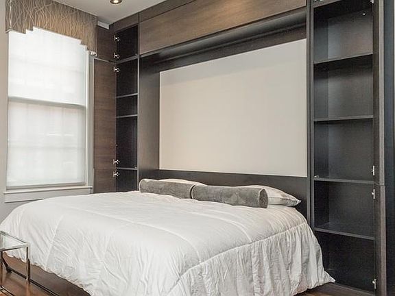 Spectacular Navy Yard studio (w/defined sleeping area) and 1 full bath, features exquisite professionally designed customizations throughout. Open floor plan, 9' ceilings, walnut hardwood floors, stainless steel appliances, white quartz countertops, back splash, gas cooking, central A/C, many custom lighting fixtures, built-in storage, murphy bed and in-unit washer/dryer. Convenient nearby rental garage parking available. 2015 new construction. Close proximity to restaurants, parks, shopping and Boston harbor with MBTA water taxi service to Long Wharf.