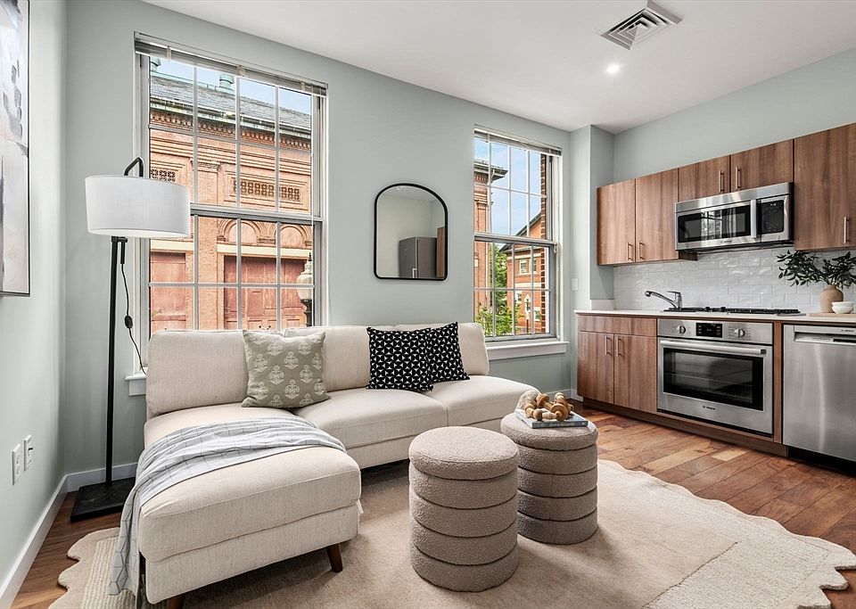 OPEN HOUSE SAT 11-12 & SUN 1-3! Modern Studio that lives like a 1-Bed Condo at The Starboard, Charlestown Navy Yard’s most desirable boutique residences. Beautifully designed, offers the perfect blend of modern luxury & historic charm. Soaring 9’ ceilings & oversized windows fill the space with natural light, creating an open, airy feel ideal for city living. Featuring walnut hardwood floors throughout. A sleek chef’s kitchen with quartz countertops, custom cabinetry, Bosch appliances, gas cooking & a dedicated dining space. The serene bedroom comfortably fits a king-size bed & includes a custom closet. A stylish bathroom. Additional highlights include central AC, in-unit washer dryer, & bike storage. The Starboard offers concierge service & professional management in a premier waterfront location—just steps to restaurants, parks, shops, garage parking a block away & the MGH shuttle. Don’t miss this opportunity for turnkey luxury living in one of Boston’s most historic neighborhoods.