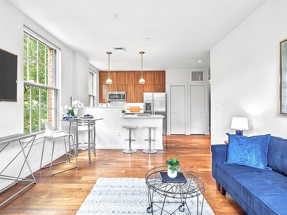 Special opportunity to own at the highly coveted Starboard! This flawless front-facing unit offers an idyllic floorplan with elevated corner placement, 9.5' ceilings, and incredible natural light throughout. Large and dimensional living with tree-lined privacy is the perfect space to relax or entertain. Chefs kitchen provides oversized custom cabinetry with quartz counters, gas cooking, built-in breakfast bar, and direct access dining. Generous primary bed with room for a king-size, handcrafted closets, and modern designer bath. Guest room, with dedicated full bath, is ideal for the growing family or home office / gym. Concierge. Pet friendly. Central AC. Bicycle storage. In-unit Laundry. Rental Garage Parking available. Enjoy Summer just steps to Boston Harborwalk, North End, TD Garden, Whole Foods, public transportation, and all the restaurants you could ask for! A rare chance at boutique luxury-living in the beautiful and historic Navy Yard.