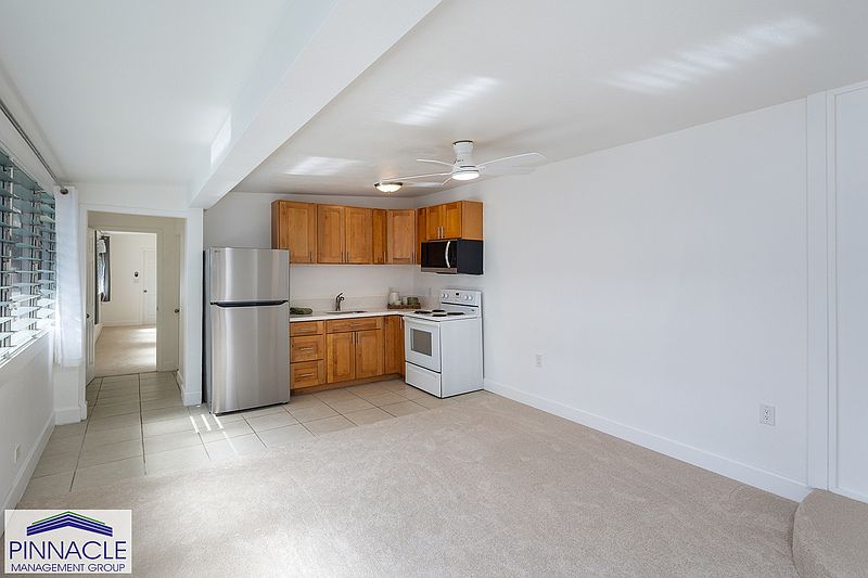Remodeled: 2024 Amenities: Community Laundry Spacious 1 bdr/1 bth unit with a lanai area and storage area in desirable Kaneohe. Large living room and bedroom. Beautifully renovated shower, brand new vanity, refrigerator, microwave, quartz countertop, carpeting, window AC units and freshly painted. Includes 1 assigned parking stall located right in front of the unit and community laundry onsite. Only 6 homes away to a large park with basketball court, tennis courts and playground. Just minutes away from Kaneohe Marine Base, Kailua town, Whole Foods and the top ranked in the Travel Magazine - Kailua Beach, close to Windward City Shopping Center with 24 Hour Fitness, CVS, restaurants, Starbucks etc... and a few miles to Windward Mall. 1 small dog considered under 30 lbs. No virtual showings. Must view in person before applying. VIEWING MUST BE SCHEDULED ONLINE.