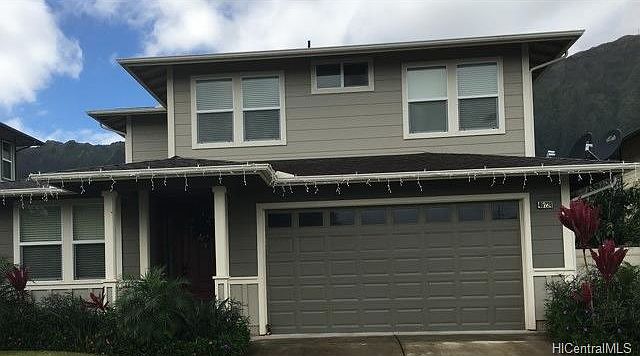 Enjoy life in paradise the way it was meant to be in this spacious Koolau view home. This Noelani model home is only 4 years young with all the comforts of a new home. Features include: central air, stainless steel appliances, updated kitchen, laundry room, office space, double sink, garage, spacious lanai and fenced yard with green.