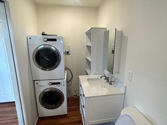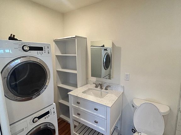 Private detached studio with brand new bathroom including a walk-in shower and beautiful kitchenette area. Includes washer/dryer and refrigerator in unit. Large studio that could be divided into a bedroom and living room. Bright and airy space, plenty of windows with good views. Includes a multi-setting fan with a remote control. One off-street parking spot. This studio is attached to a duplex above the garage and has its own private entrance with stairs. Kayak or SUP access to the bay. Rent includes electric, water, and internet. Renter will pay gas, estimated to be about $25 every 2-3 months.
