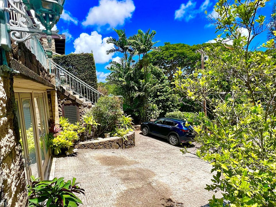 This stunning 3 bedroom 2 bathroom home (top floor), sits at the back of a gently winding road that looks out to the magnificent Kaneohe Bay. Once a local artist's retreat, this unit has been thoughtfully upgraded to keep its old-world charm. The warmth of the wooden interior combined with the floor-to-ceiling windows and an open floor plan beckons you in. Find tranquility in one of the many peaceful spaces on the property. Whether It's playing piano in the grand room, basking on the deck overlooking lush vegetation, or evening enjoying time on the swing hiding in the expansive backyard. There is so much to be discovered in this truly special place. The lush, tropical landscape abounds from every window, and you can even see Kaneohe Bay. Enjoy picnics and entertaining in the beautiful backyard, and all that the island has to offer. The unit also receives discounted electricity, from solar panels on the roof. Stainless Steel appliances including (Fridge, Oven, Dishwasher, and Microwave). Washer and Dryer Included. Finally, there is also ample parking. Solar on the roof provides a flat electricity fee of only $200 per month!