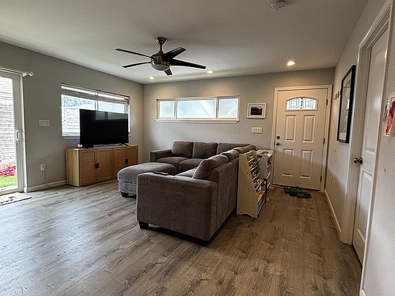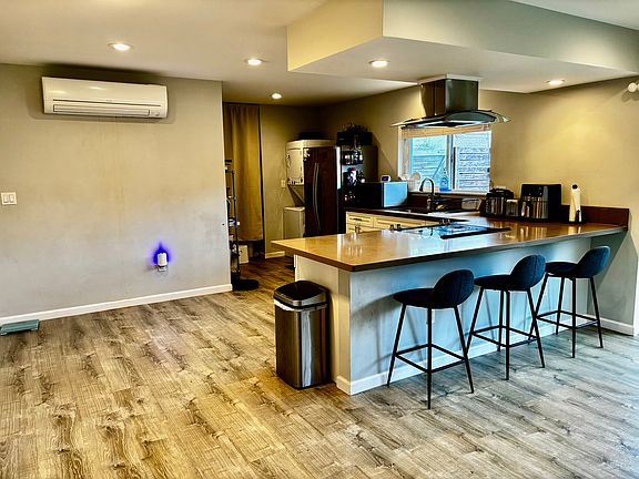 Downstairs 2 bedroom 1 bath with hardwood flooring. Open kitchen connected to a living room space with split A/C. Surrounding yard and private entrance with 2 driveway parking stalls. Close to mall, schools, dining and highway access. Downstair tenants will be responsible for 40% of the electricity. The home does have 26 PV panels with 2 solar batteries. With this system monthly fees are kept at a minimum.