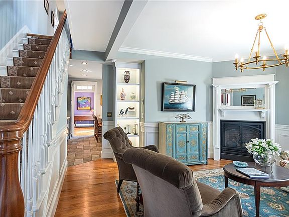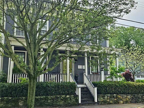 Experience the timeless character of Walnut Point, a classic Greek Revival with charm and sophistication. With over 3,000 square feet of living space spread across 5 bedrooms, 3 baths, and a cottage with an attached garage, this home offers classic elegance and modern comfort. The lush secret garden offers privacy & serenity with minimal upkeep. Truly outdoor living space crafted for entertaining or a private retreat with a wisteria-covered pergola, bubbling fountains and walking paths to reading nooks. Expansive covered front porch sits above well-appointed stone walls and gardens. High ceilings, four gas fireplaces, multiple living areas, including a fully remodeled kitchen and wet bar are perfect for family gatherings and entertaining. The complete package of a finished home includes a garage space and multiple parking spots. Situated just a short jaunt from town and waterfront parks with boat and kayak launching ramps at the bottom of your street, you can easily live the Newport lifestyle but still enjoy the peace and quiet The Point offers. This home blending history, luxury and lifestyle can be yours to enjoy this summer.