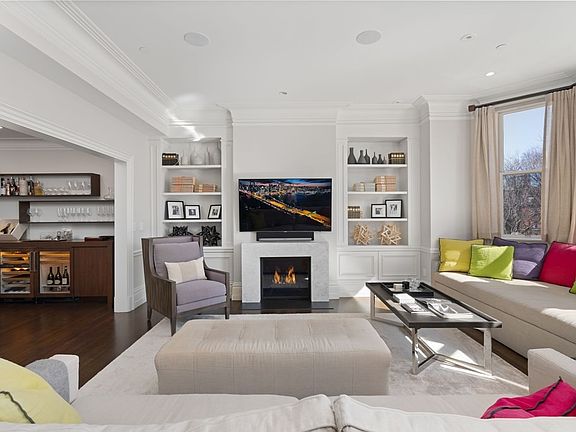 A rare and unique offering. The only home currently for sale on Commonwealth Ave. with approx. 3,000sf of living space on one floor and 2 garage spaces. This exceptional residence is one of only 5 homes in this magnificent double townhouse, with 50+/- feet of frontage facing the tree-lined mall. Multiple windows provide magnificent city views and emphasize natural light and the importance of this south-facing location close to the Public Garden. With direct elevator access and high ceilings, the residence features the bold contemporary design of international award-winning designer Sacha Jacq. The floor plan prioritizes an open arrangement of spaces with direct sightlines across the living, dining, family and kitchen areas. There is exceptional millwork and a paneled wine room that could be transformed into a home office. The kitchen is equipped with superior cabinetry and an impressive range of appliances. The large principal bedroom and 2 guest bedrooms each have an ensuite bathroom.