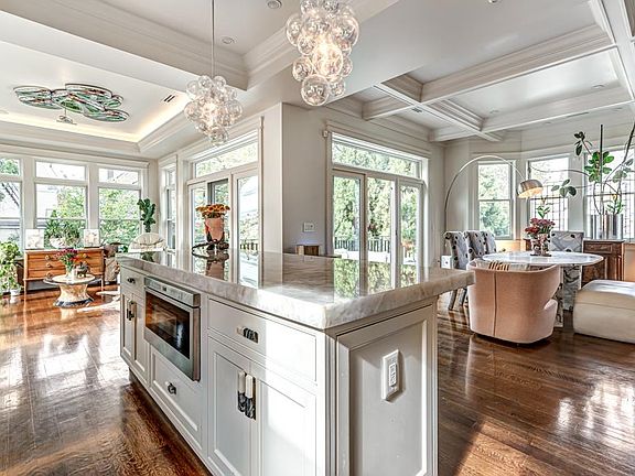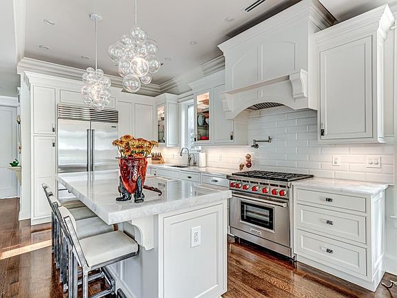 Welcome home to this completely renovated 2-Family Colonial home, which now lives as a truly spectacular Single Family Home. Located in the illustrious "Kings Bluffs" of Weehawken, this home is a true Gem. The grand entrance welcomes you with a 12 ft ceiling foyer, marble floors, restored mahogany walls, and a restored Mid-Century staircase. The second level offers an impressive and unmatched open floor plan, featuring a spacious primary Living Room, converted tranquil Family Room with a Walk-In Closet and private office space, a Designer Kitchen, Formal Dining Room, a gas fireplace, and a custom entertainment center. The elegant 10 ft tray and coffered ceilings with LED lighting set the perfect ambiance. The kitchen is a chef's dream with custom K che+Cucina cabinets, Quartzite countertops, and top of the line appliances including Subzero refrigerator, Wolf stove and Built-in Microwave Oven, Miele Dishwasher, and reverse osmosis filtration system, and of course, a breakfast bar.
