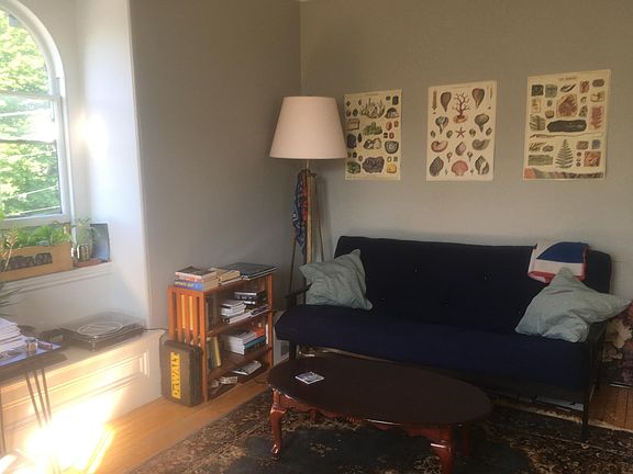 Spacious, clean, sunny, newly painted and filled with charm one bedroom apartment in gracious Victorian building. Third floor unit with views of distant hills. Numerous arched windows with settees. Hard wood floors. Conveniently located coin-operated washer dryer on first floor. West side Bangor location convenient to bus route, I95, and walking distance to terrific downtown restaurants, stores, library, and waterfront. It is 2 miles from Maine Medical Center and 11 miles from the University of Maine. Rent includes heat, hot water and sewer; tenant pays electricity. Security deposit required. Must be non-smoker both inside and outside. No pets; cat possibility. Quiet building with professionals; looking for quiet, responsible tenant. Off street parking for ONE car. Heat, hot water, sewer provided. Tenant pays electricity.