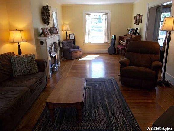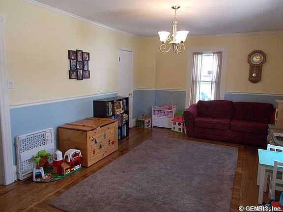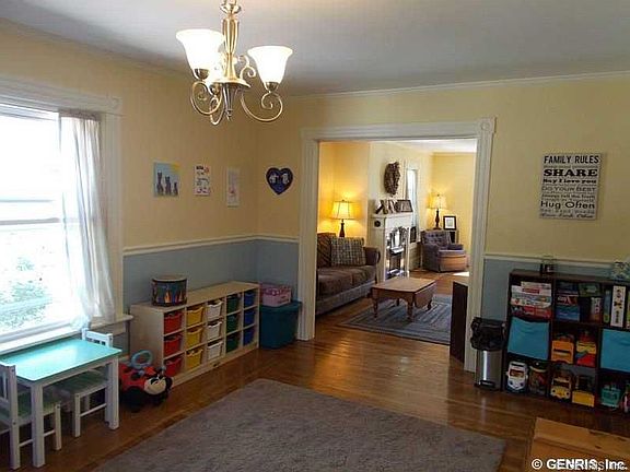 Spacious, move-in ready home with 3 bedrooms and 1.5 baths. Beautiful hardwood floors running through large living room with decorative fireplace, and formal dining room. Open kitchen with newer appliances has eat-in area. Convenient mud/laundry room and a half bath complete the first floor. 3 bedrooms upstairs. Master bedroom has entire wall of closets. Full bathroom was recently painted. Walk up attic for extra storage! Basement has large finished rec room and separate utility/storage area. Completely fenced in yard with playset and a detached garage.
