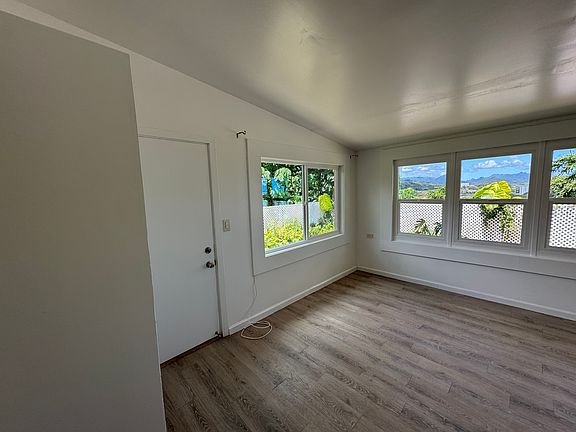 1 bedroom/1 bathroom unit with updated paint, vinyl flooring, and brand new windows. Large property at the end of the road offers more privacy with mountain and ocean views. Kitchen includes fridge, oven/stove, and microwave. Shared washer and dryer. 1 parking. Property is close to Windward Shopping Center (Starbucks, Foodland, 24 Hour Fitness, Longs, McDonalds, etc.) as well as highway on/off ramps for an easy commute. No smoking. No pets. Internet not included. Water and electric are included in rent. Please send a message through Zillow to schedule a showing. Minimum 12-month lease. No smoking. No pets. Shared washer and dryer. Water and Electric included.