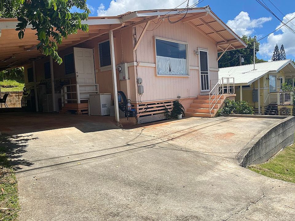 This plantation style 3 bedroom 1 bathroom home features beautiful original hardwood floors throughout. Located in desirable Kaneohe Town off of the main road on a cul-de-sac. Boasting sweeping Ko'olau mountain views, this home is perfectly situated to enjoy the tradewinds. A large tandem carport with bonus parking space in the front of the house provide ample outdoor living areas and storage. Condo price for a single family style home!