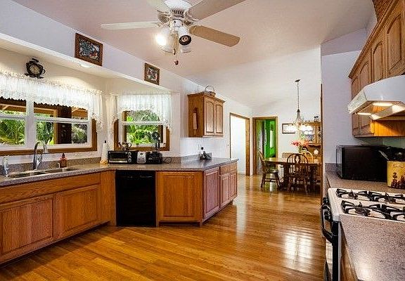 Quiet, ocean view location in Honokaa. Located at the end of a culdesac - this extra spacious 5 bedroom, 4 bath home includes a 456 sq. ft. ADA accessible bath and living area with its' own entry that could be used for additional family members - or as a vacation rental. It has access to a large covered deck with ocean views that is perfect for sipping your cup of morning coffee or barbecuing for a family dinner. Bamboo floors in the kitchen, dining area, hall, and bedrooms. New carpet in the living room. Solid surface counters in the baths. Spacious kitchen with lots of cupboard and storage space and gas stove. There is a large 532 sq. ft. enclosed garage with storage space and room for "at-home hobbies. This home is in excellent condition and is move-in ready.
