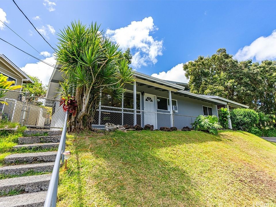 A charming single level home located in Apapane Woods. This 3 bedroom 2.5 bath single family CPR home is situated on a large lot offering treetop, neighborhood, and Ko’olau views. The home features an efficient and thoughtfully designed floor plan that is set up for indoor / outdoor living. There is a spacious covered lanai located off of the kitchen and dining room, a partially enclosed yard area, and a huge carport where the half bath is located making it a versatile space. Live in the home as is, or explore possible options to expand. Parking is plentiful and can accommodate 4+ cars with an attached private carport, private driveway parking, 2 deeded stalls, plus guest stalls. Conveniently located with easy access to highways, shopping, restaurants, grocery stores, military bases, and various outdoor activities. Maintenance fees includes water, sewer, common area maintenance, and trash.