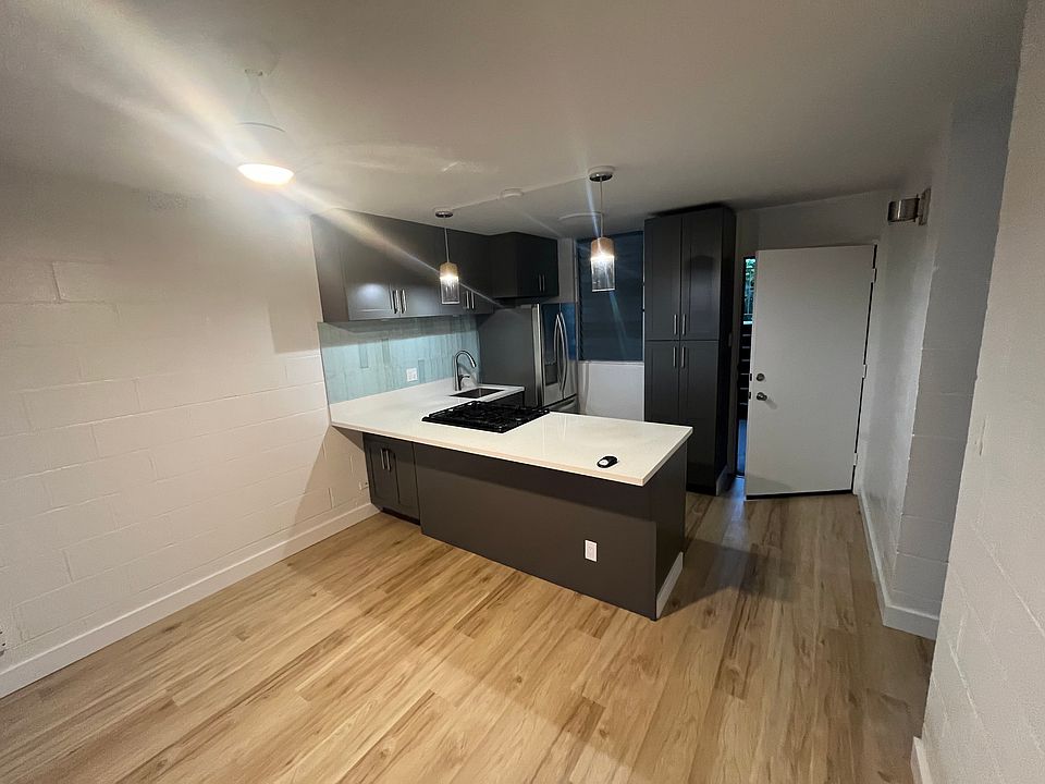 Completely remodeled 2bd/1bth condo, new kitchen, new bathroom, brand new floors and freshly painted. All new appliances, lights and fans. Comes with 2 parking stalls Owner pays for water, sewer and gas, rental is responsible for electric and internet.