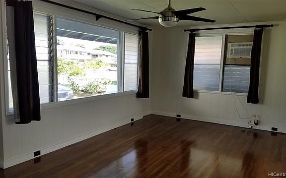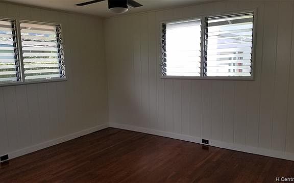 Recently renovated, now available is a two bedroom, one bath single family home with remodeled kitchen and full bath both with new ceramic tile flooring, fixtures and lighting. Included in the kitchen is its new appliances, new cabinets, back splash, recess lighting, granite counter tops. Everything new in the bathroom displaying its new vanity sink with matching granite counter space, full mirror, new full sized bath tub with beautiful tiled walls, new toilet and cabinetry. The original hard wood flooring refined to its natural wood stain and shine in the living room, hallway and bedrooms adding to a rustic feel. All electrical work throughout the home has been rewired and coded. Spacious fenced in back yard allows you to relax and unwind embracing the Koolau winds.