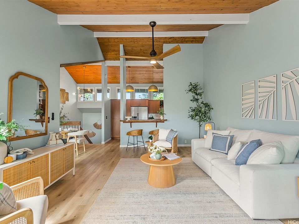 Blending nature and serenity, this 3 bedroom, 2 bath unit with a deeded boat slip, combines the feel of a tropical oasis with the beauty of the surrounding Ko’olau mountains and grandeur of Kaneohe Bay. Second floor vaulted ceilings with exposed wood beams provides an open flow to one of 4 private lanais where you can enjoy a beverage of choice or relax and meditate to the sounds of nature. Recently updated kitchen with a gorgeous monkeypod bar top will have you excited to create and/or host lavish get togethers with family and friends. Feel transported to a luxurious spa when you step into the recently updated bathrooms. Enclosed, private back yard space which leads to an outdoor grassy area is perfect for fur friends and keiki. Makani Kai Marina is a gated, pet-friendly community sitting on the waterfront of Kaneohe Bay. You’ll have access to the pool, rec room, grilling spaces as well lots of guest parking. Don’t own a boat? Rent out your slip for monthly income!