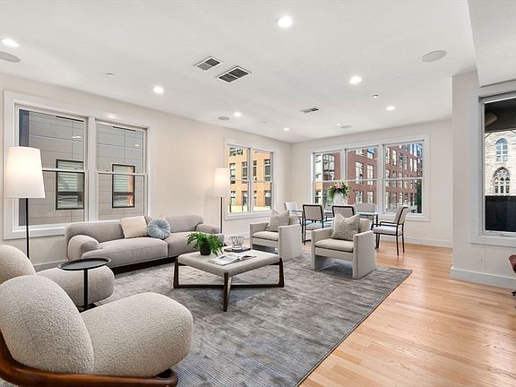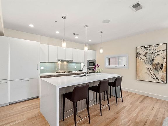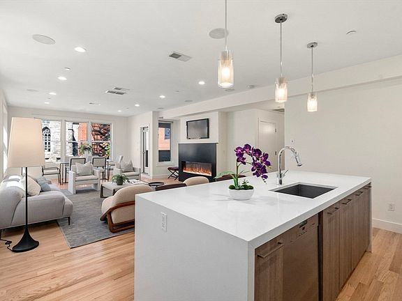 Incredible Value. Stunning Modern Luxe. 1572sf--Large + Spectacular well laid out space. Garage Parking + Private Deck + Elevator + Gas Fireplace. Prime Location in the middle of it all. 2 Bedrooms + Home Office. Elevator opens directly into this Handsome Lofty Corner home. All on one floor--16 windows + 3 exposures + tall ceilings providing beautiful natural light. Gorgeous newly refinished hardwood floors. Huge Open plan living + dining--Perfect for entertaining + gatherings with easy access to the Private deck for dining al fresco + morning coffee. Sleek luxury kitchen with white quartz waterfall breakfast bar, stainless steel appliances, gas cooking, plenty of cabinetry + prep services. 2 contemporary spa-like baths w beautiful fixtures + heated floors. King size primary bedroom + en suite bath w extra wide shower, walk in closet + deck access. Private laundry. Central AC. Convenient to Broadway T, restaurants, shops, Seaport, South End, Whole Foods + more.