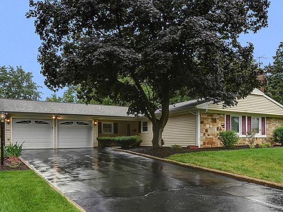 This beautifully maintained ranch style home boasts curb appeal and style, with three spacious and bright bedrooms; Master bedroom with full renovated bath w/shower stall; Living Room/Dining room w/ recessed lighting and gleaming Shaw laminate floors. The eat in kitchen has new appliances, new faucet/sink and new formica counter top; laundry room has newer washer/dryer (stays with the home); New Heating Sys and Central Air 2017 with transferable warranty; freshly painted with neutral colors throughout; power washed and professionally landscaped with sprinkler system; New carpeting 2017; 2 car garage with automatic openers; 2 car wide blacktop driveway, resealed in 2014; security system in place. The yard offers a patio with 6 foot privacy fence and large storage shed.