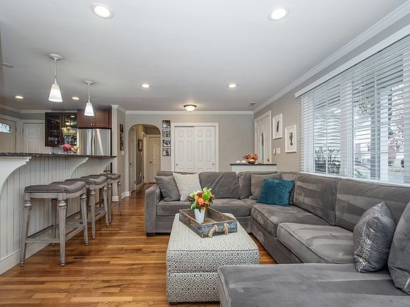 Turn-Key Ranch Style Home completely renovated in 2015. Roof & vinyl siding, generous open floor plan, kitchen with dining area, subway tile backsplash, recessed lighting, detailed crown molding, granite counters, two tier island with granite counters, custom wood cabinets and side panels, pendant lighting, SS appliances, SS Samsung Gas Range (1yr old), SS Samsung Fridge/Freezer(1yr old), hardwood floors throughout, freshly painted interior walls, master bed room w/vaulted ceiling, walk in closet w/custom built shelves, master bath with grey tiled frameless enclosed glass shower, tile flooring, linen closet, ceiling fans w/lights in all "4 Bedrooms, Central Air, Nest Thermostat System, installed rear wood deck, fire pit, shed **approx 400sq ft unfinished basement ready to be completed as bonus room/media room/gym, laundry w/ double sink, full walk out to rear yard, rear deck with fire pit. ***Offers, if any, due Monday (3/22) by 12PM. Please allow 24hr seller reply***