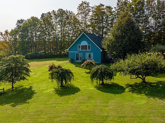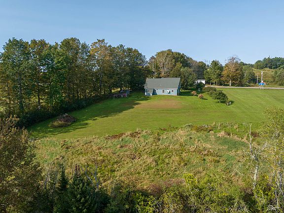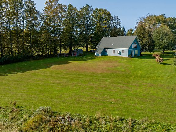 Adorable & Efficient Cape style home with an attached oversized 1 car garage on a beautifully manicured 2.23 acre lot! Radiant heat throughout home and garage. The home also has a heat pump for heating and cooling. The garage also has a monitor heater for heating as well. The first floor of the home offers 1 bedroom, a good size full bathroom and the kitchen and living room with cathedral ceiling and open stairway to the second floor. The second floor offers a family room with lots of natural light from the wall of windows and the master bedroom with a half bathroom. There is a shed and a fire pit in the yard. Very well maintained and room for expansion if needed at some point!
