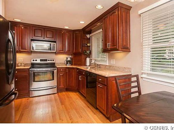 Elegant Ranch home with finished walk-out lower level! Dramatic cathedral ceiling stretches over BOTH the Dining rm AND the Family rm. BRAND NEW CHERRY EAT-IN CHERRY KITCHEN WITH GRANITE COUNTERS! Just about every window on the main floor has been replaced. Step out through sliding doors to a big deck. There's new furnace as of 2010 too! Lower level is finished and walks directly out to the patio. The lower level is prefect for overnight guests or a live-in family member. There's a main living rm w wood burning fireplace as well as a private bdrm & a modest full bath. Plenty of storage!