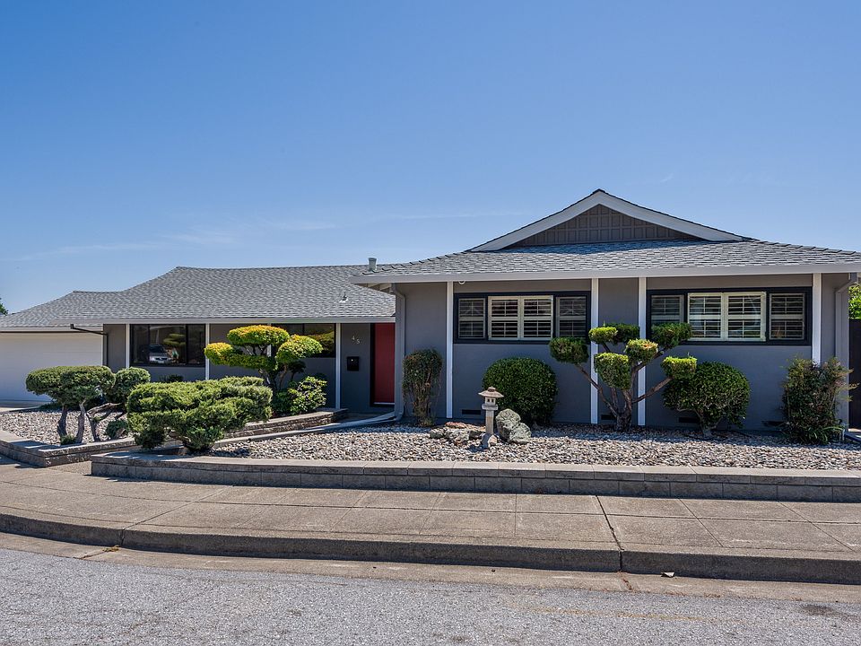 This charming Home is located in an excellent and sought after Cul-de-sac in Alder Manor neighborhood, on the west side of Alameda De Las Pulgas. Lovely grounds with fruit trees. It is single level home with a great scenic view of the mountains from the front of the house has been beautifully remodeled for everyday comfort and enjoyment. The interior reflects a warm modern aesthetic. This home has been lovingly cared for throughout the years. Abundant natural light. Double-pane windows with plantation shutters, hardwood floors, new carpet. Remodeled kitchen will new stainless steel appliances. Remodeled bathrooms with new vinyl floor, new toilet, new glass doors and resurfaced shower and tub tiles,sink and counter tops . Freshly painted interior and exterior. Central forced heat and air conditioning. Private large covered patio and lush lawn -flat for ease of use and comfort-provides endless joy for relaxation with family and friends for gatherings.