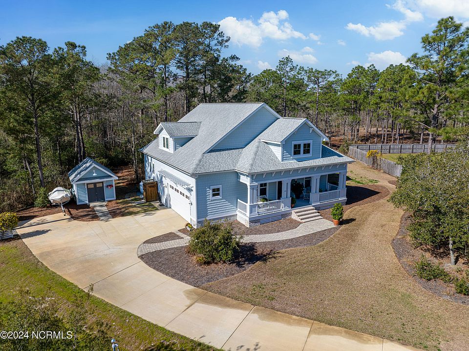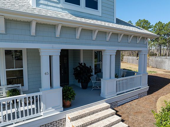 Welcome to 45 Angel Oaks Court! A nature lovers paradise nestled on a serene cul-de-sac with a large .8 acre lot backing up to the Holly Shelter Game Lands! Offering unparalleled privacy, this charming coastal craftsman home boasts 3 bedrooms, 2.5 baths, a large bonus room, and a nice-sized flex space, that is currently being used for conditioned storage. The chef's kitchen is beautiful and equipped with a large kitchen island with plenty of cabinet storage underneath, and a separate coffee bar with a mini refrigerator, making the kitchen a delightful space for culinary adventures and entertaining guests! The master bedroom is a true retreat, featuring an en suite bath with elegant tile work in the spacious walk-in shower, offering a luxurious escape within the comforts of the home. You will also find exquisite hardwood floors throughout the main living areas, and a gorgeous sunroom with tons of natural light and panoramic views of nature, offering the perfect place for relaxing and bird watching! Food for thought...the sellers have personally seen 93 species of birds and a myriad of other wildlife on the property! Enjoy the convenience of a 12x14 wired workshop complementing the main house's exterior and catering to various hobbies and DIY projects. Additional highlights include: a generous sized driveway with a designated space for a boat or camper, a generator hookup, and a full house carbon water filter. Come see this unique gem for yourself!
