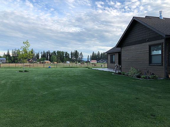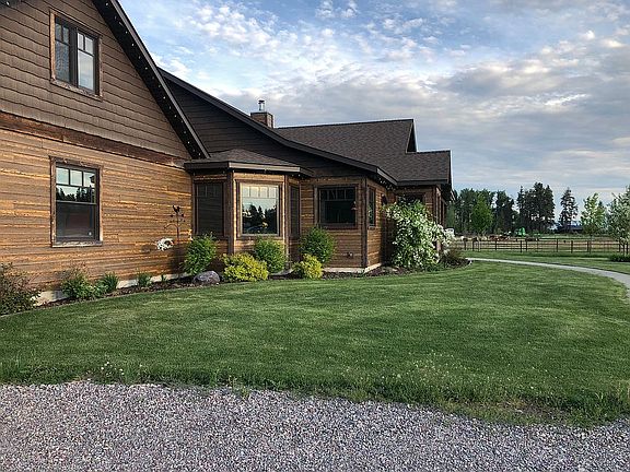 Gorgeous property. Prime location in north Kalispell. Home sits in 3.73 acres. 4 bedrooms 2 1/2 baths and bonus room. Wood burning fire place with floor to ceiling rock. Master bedroom/bathroom gas fireplace. Central vac and tile floor heat in master bath! Covered stamped concrete patios front and back, double heated garage, fence, in ground sprinkler system and fully landscaped. Gorgeous lawn with trees that surround front and side of house! Outdoor shed and chicken coop alongside Trumble Creek which runs directly in back on property. WILLING TO WORK WITH BUYERS AGENTS