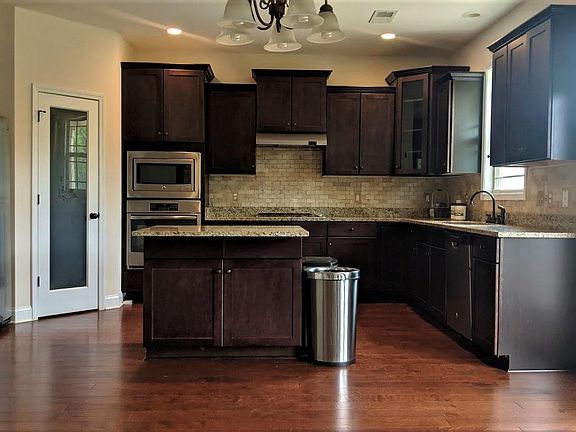 Beautiful home with an excellent floor plan. Master on main with tray ceilings and an awesome, fully upgraded bath. Hardwoods throughout the living room, foyer, kitchen, and formal dining with coffered ceilings. Living room with fireplace is open to the fully equipped kitchen featuring granite, gas stove, island, and tons of custom cabinets. Large bedrooms throughout with a loft area used as flex space. Covered porch overlooks a huge fenced back yard with wooded, undeveloped land adjacent. Perfect lot for a pool! 2 car garage with over-sized driveway so you can actually park your cars and have plenty of guests. Great location close to schools, interstates, shopping, dining, and parks.