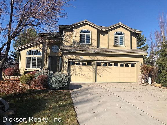 FANTASTIC EXECUTIVE HOME AT THE END OF A CUL-DE-SAC OVERLOOKING PEAVINE PEAK AND NORTHWEST RENO - This beautiful custom home is exactly what you have been looking for. The island kitchen features a 5 burner gas stove, double ovens, French door refrigerator and a wine refrigerator. The cream colored custom cabinetry with oiled finish is topped with slab granite offer more storage than most people can use. Two steps down is a comfortable family room with a gas log fireplace with matching granite surround. On the other side of the kitchen is a cozy dining room and living room with soaring ceilings. The master suite is tranquility at its best; a large sleeping area with a wall of windows overlooking the Sierras to the West, a two way fireplace that can also be enjoyed from the private sitting area and a huge bathroom with a double sink vanity, garden tub and a separate shower all surrounded by sparkling mirrors. Best of all there is a massive "L" shaped closet; so large it has its own window. Down the hall are two additional bedrooms and a second bath with granite countertop and custom tile trim. Outside is an exquisitely designed yard with mature trees, patio and water feature. Of course it also offers the outstanding view of Northwest Reno and the Sierras. Best of all; the rent INCLUDES A PROFESSIONAL LANDSCAPER so all you need to do is enjoy the garden. There is also a three car garage with tons of cabinets. One Year Preferred (RLNE5403466)