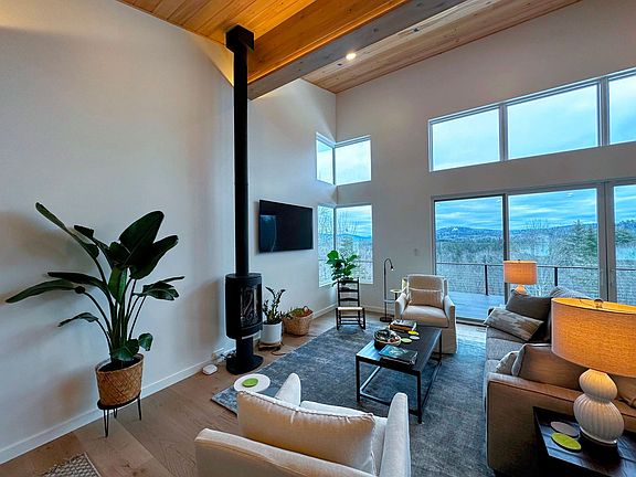 This stunning 4-bedroom home, completed in 2024, offers a spa-like vibe with a rustic-chic contemporary design in the White Mountains. Perched on a hillside, it features enormous windows that provide breathtaking views of the surrounding mountains. Enter through the top-level mudroom and be captivated by the view. The main living space includes a modern kitchen with luxury appliances, a welcoming living area with a large wall-mounted TV, and a Jotul gas stove for warmth and ambiance. Two primary suites with king bedrooms, walk-in closets, and luxurious bathrooms offer privacy. A huge deck spans the length of the home, perfect for al fresco dining and enjoying the view. The lower level mirrors the upper, with a game area, additional sleeping quarters, and access to an outdoor hot tub. The home boasts a modern kitchen with luxury appliances and a welcoming living area with a large wall-mounted TV and a Jotul gas stove. The two primary suites feature king bedrooms, walk-in closets, and luxurious bathrooms with walk-in showers and motion-activated lighting. The lower level includes a game area with a pool table, shuffleboard, and TV area, along with additional sleeping quarters and a shared bathroom with a jetted tub. Outdoor spaces include a huge deck and a hot tub. Guests have the option to purchase pool and gym passes at the Mountain View Grand Resort and Spa, subject to availability. Parking is limited to 4 cars, with additional vehicles requiring specified overflow parking. Trailers or RVs need permission for parking. Located in Bethlehem, this home is close to great restaurants, Rek'lis Brewery, and ski resorts like Bretton Woods and Cannon Mountain. Bethlehem offers a quaint main street with views of Mount Washington, the Colonial Theater, golf courses, and bike trails. Nearby, the town of Littleton and various outdoor activities, parks, hikes, and attractions like Santa's Village and the Cog Railway provide endless entertainment options. Check-in is at 4 PM and check-out is at 11 AM. Quiet hours are from 10 PM to 8 AM to maintain respectful noise levels. This is not a pet-friendly home. The property is equipped with exterior cameras for security purposes. Access from parking to the front door requires climbing three steps. Trash and recycling should be deposited in the container at the end of the driveway. Unauthorized fires are prohibited, and only provided grills and fireplaces should be used. Fast and reliable WiFi is available throughout the home, ensuring a seamless remote work-friendly environment.