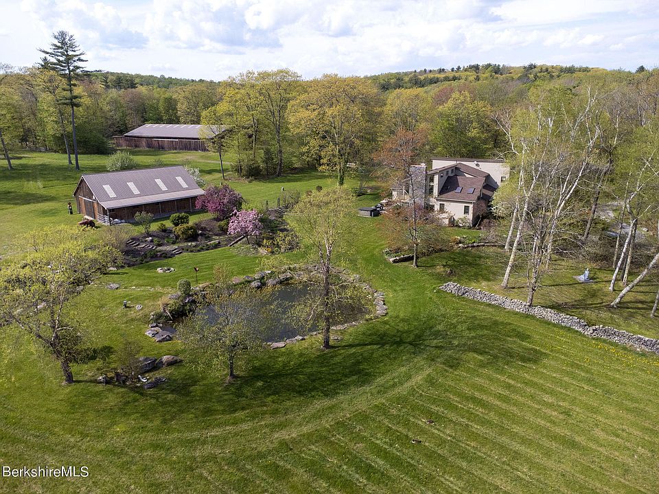 Set on 20 private acres of pasture & woods, w/riding trails & pond, this fully equipped equestrian farm consists of a 4 bedroom residence, stable with apartment, indoor arena & bucolic grounds. This stunning contemporary home features a gorgeous, well-outfitted chefs kitchen w/walk-in pantry, towering ceilings & wall of glass. Formal dining room is accessed through butler's pantry. Bright & inviting den w/cathedral ceiling. Anchored by stone fireplace, the living room opens to wood deck w/stone walls & hot tub overlooking the pastoral scene. A custom built office, half bath & small den w/door to outside complete the first floor. Upstairs, a dramatic primary suite w/fireplace, balcony, skylights, cathedral ceiling, 2 walk-in closets & bathroom w/soaking tub. Also on this floor is a 2nd en-suite bedroom, plus 2 bedrooms which share a bath. Three-car garage. Use this unique property for husbandry, or re-envision it. Either way - this is a unique sanctuary. Make your Berkshire dreams come true.