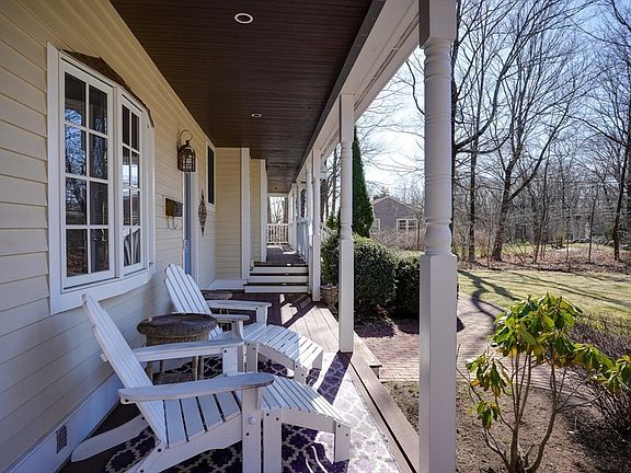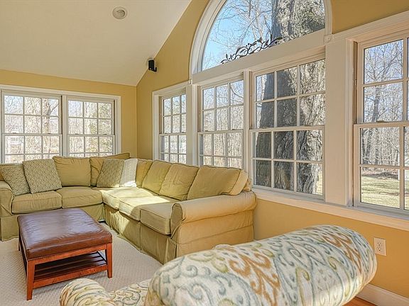 Beautiful 5 BR 3000sf+ colonial on a level 1.5-acre lot, close to schools and town center amenities! Unwind in the evening on the front farmer’s porch while taking in the serene sunset. The spacious Living/Dining room spans the home's entire width, featuring HW floors and a cozy fireplace—perfect for gatherings. Savor morning coffee in the 4-season sunroom or on the composite deck, both overlooking the private backyard and conservation land. The eat-in kitchen boasts SS appliances and plentiful cabinets/pantry. A private office is located off the foyer. The versatile 5th BR on the main level can be used as a workout room, playroom, or 2nd office. Upstairs, the modern elegant main suite addition offers a cathedral ceiling, built-ins, gas fireplace, luxurious bath with glass-enclosed shower and double vanity, and an oversized custom walk-in closet. Three additional BRs with HW floors, a hall bath, and a laundry room with sink complete the 2nd level of this well-appointed home.