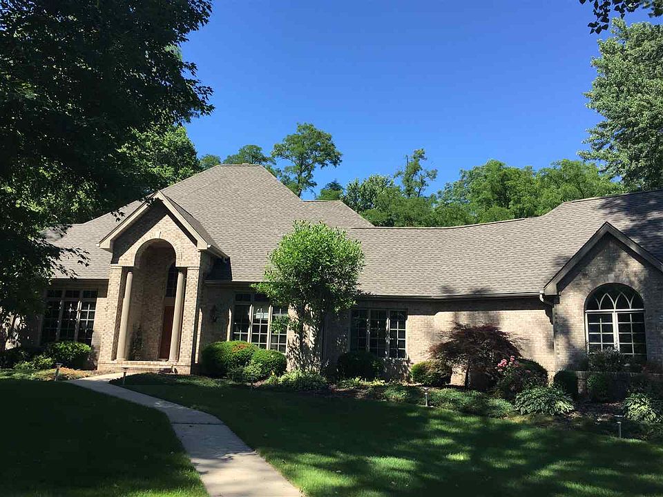 Custom Built home nestled in beautiful Capilano By The Lake on a .73 acre lot. Feel the grander of the foyer entry, cathedral ceilings and open stairways. First floor master boasts a spa like bathroom. Eat-in kitchen, formal dining room and den. Warm hardwood floors in entry, den, hallways and living room. Two gorgeous stone fireplaces - living room and family room. Four large walk-in closets. Huge 1,100 Sq.Ft. back paver patio - facing serene wooded area with mature trees and a stream. This home is an entertainer's dream. Located minutes from Purdue University and shopping. June 2017: New Roof ~ GAF Timberline High Defination Architectural Lifetime Shingles and Roof system. 130 MPH wind rating.