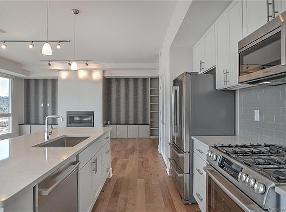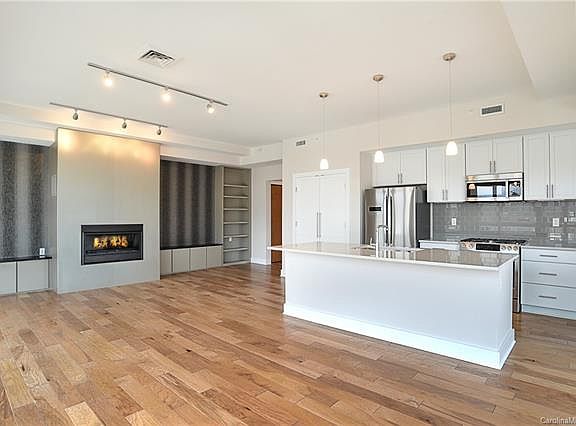 Looking for long range views and a Huge outdoor space (one of the largest downtown) , this new construction, contemporary condo in Downtown Asheville's hot South Slope district has many upgrades! Spanning the entire length of the end of the building this condo has a gas fireplace, gas connections for your outdoor grill and gas range. Upgraded with large pantry, large windows with views, west, north and east for natural light and full city views. Building offers soon to be open Sushi bar and other retail to come. Secured, covered 2 Parking spaces valued at $100,000 and separate storage room on same floor. 45 Asheland has 7 stories located near world-class dining, shopping, near all the breweries, theater, music, and galleries.